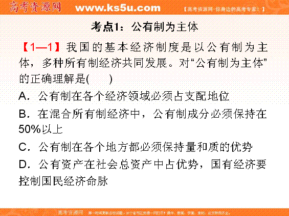 有道:江苏省邳州市第二中学2014届高三政治复习课件:专题2 第2讲《我国的基本经济制度》