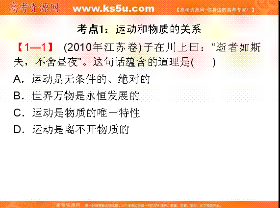 有道:江苏省邳州市第二中学2014届高三政治复习课件:专题2 第2讲《哲学的运动概念》
