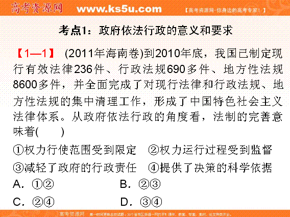 百度:江苏省邳州市第二中学2014届高三政治复习课件:专题2 第2讲《政府权力的行使与监督》