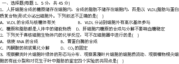 百度:山东省山师附中2014届高三11月期中学分认定考试 生物 Word版含答案
