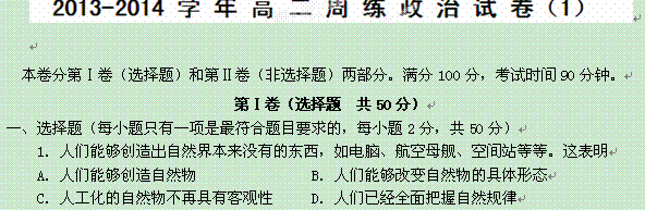 百度:湖北省武汉市汉铁高级中学2013-2014学年高二上学期10月周练 政治试题 Word版含答案