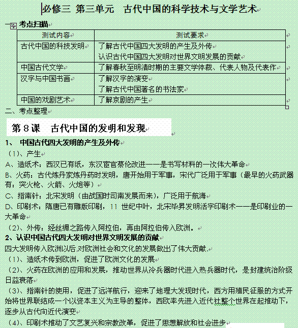 有道:江苏省高邮市界首中学高中历史考点整理: 第8课 古代中国的发明和发现 (新人教版必修三)