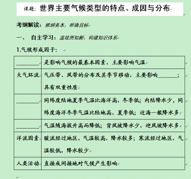谷歌:四川省仁寿中学高三地理复习学案: 气候类型