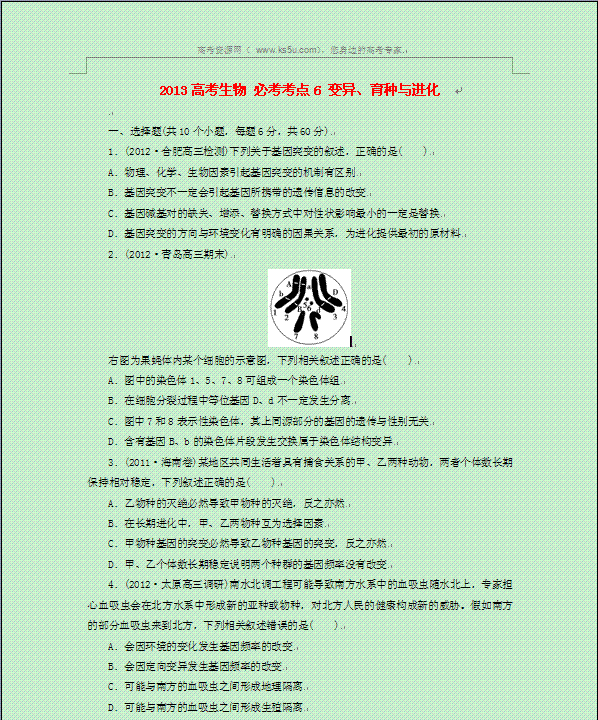 谷歌:2013高考生物教案 必考考点6 变异、育种与进化 新人教版