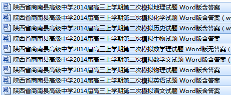 百度:陕西省商南县高级中学2014届高三上学期第二次模拟 8科9份 Word版答案不全