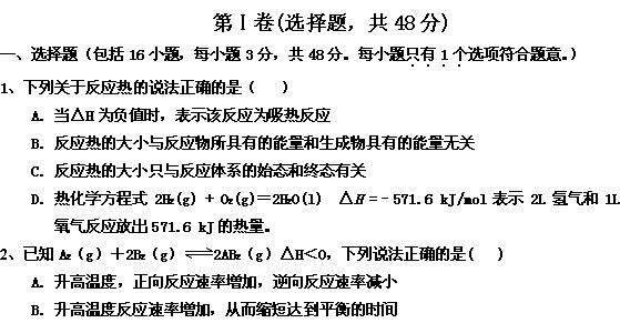 百度:山东省德州市跃华学校2013-2014学年高二上学期期中考试化学(理)试题 Word版含答案