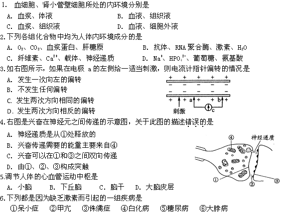 百度:江苏省扬大附中2013-2014学年高二上学期期中考试生物试题(选修) Word版含答案