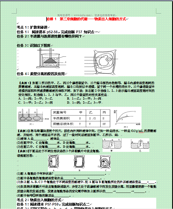 谷歌:2014年高考生物复习学案:第三章 物质出入细胞的方式(七) 必修1 浙教版