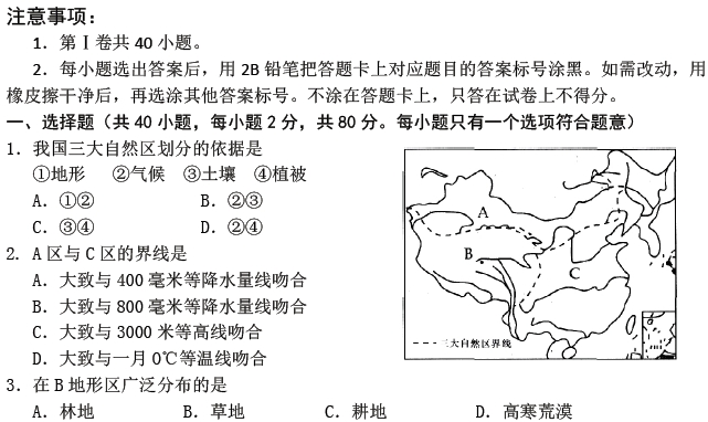 百度:《KS5U首发》山东省山师附中2013-2014学年高二上学期期中考试 理科地理 PDF版无答案