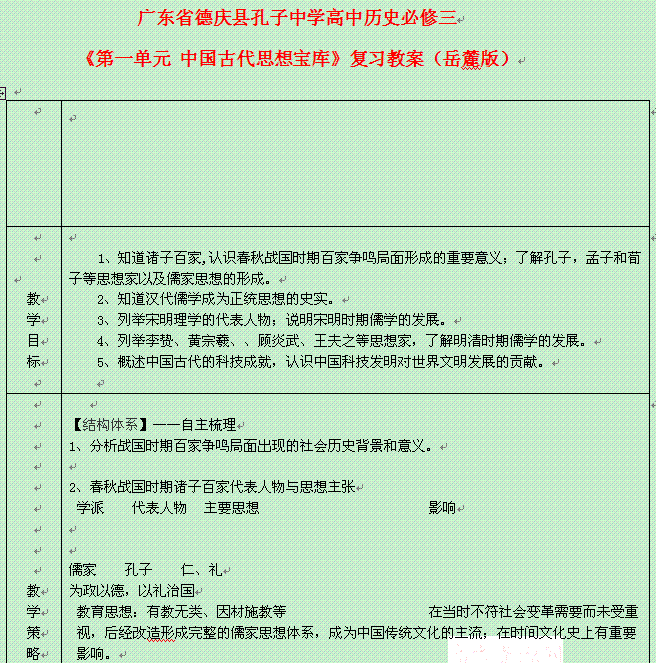 百度:广东省德庆县孔子二学高二历史复习教案:《第一单元 中国古代思想宝库》(岳麓版必修3)