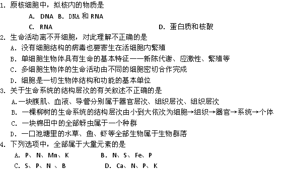百度:四川省成都七中2013-2014学年高一上学期期中考试生物试题 Word版含答案