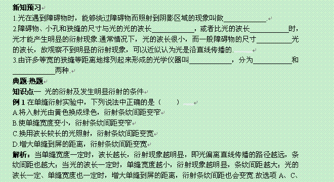 百度:河南省新安县第一高级中学高中物理选修3-4《13.5 光的衍射》导学案