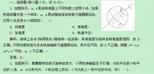 百度:2014届高考物理一轮复习 第4章 第3单元《圆周运动》定时跟踪检测 新人教版 Word版含解析