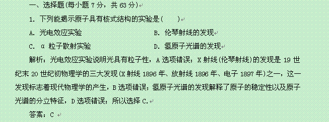 百度:2014届高考物理一轮复习 第15章 第2单元《原子结构 氢原子光谱》定时跟踪检测 新人教版 Word版含解析