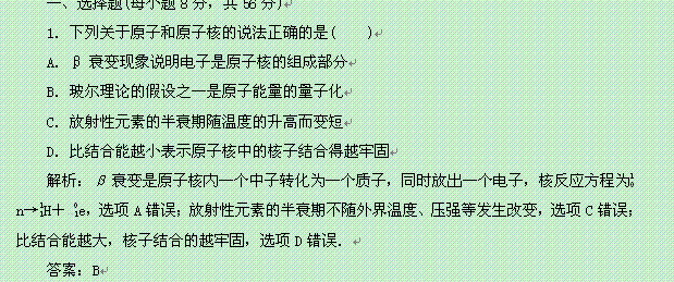 百度:2014届高考物理一轮复习 第15章 第3单元《天然放射现象、核反应、核能》定时跟踪检测 新人教版 Word版含解析