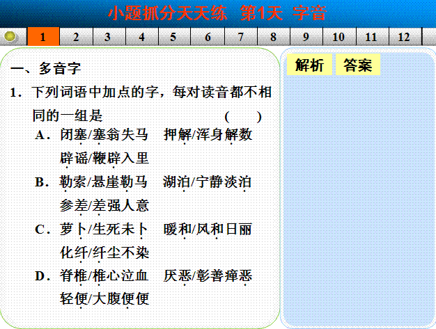 百度:《北京一轮复习汇总》2014届高三语文一轮复习课件:小题抓分天天练 第1天