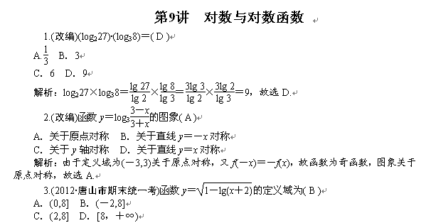百度:2014届高考数学(理)一轮复习热点针对训练:第9讲《对数与对数函数》 Word版含解析