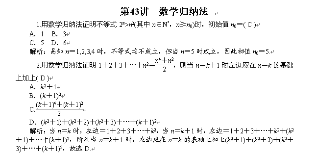 百度:2014届高考数学(理)一轮复习热点针对训练:第43讲《数学归纳法》 Word版含解析