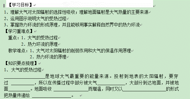 谷歌:江苏省昆山震川高级中学高一地理上册学案:第二章 第一节 冷热不均引起大气运动(1)