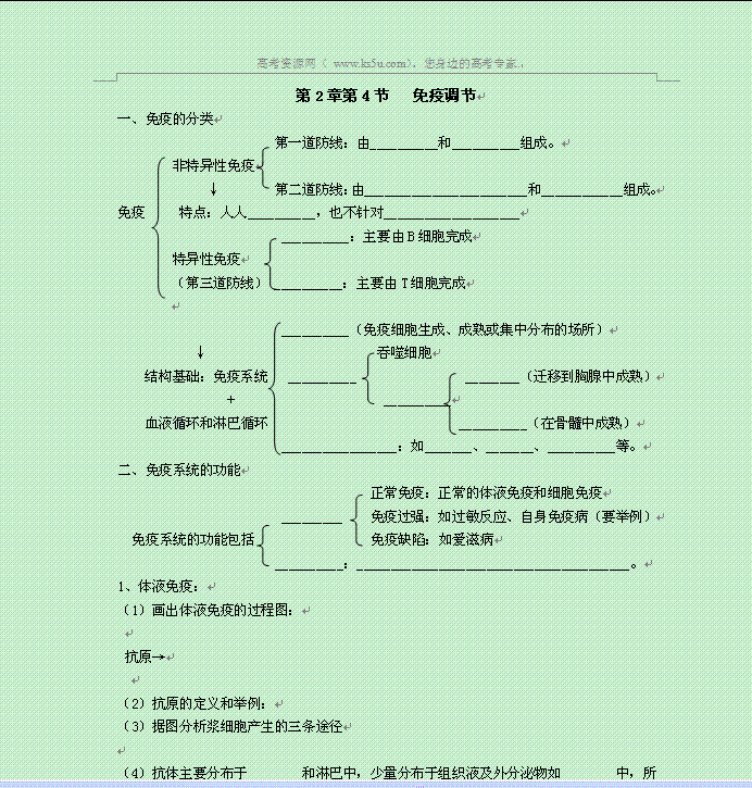 有道:2014年高中生物全册复习提纲素材:第2章 第4节 免疫调节 人教版必修3