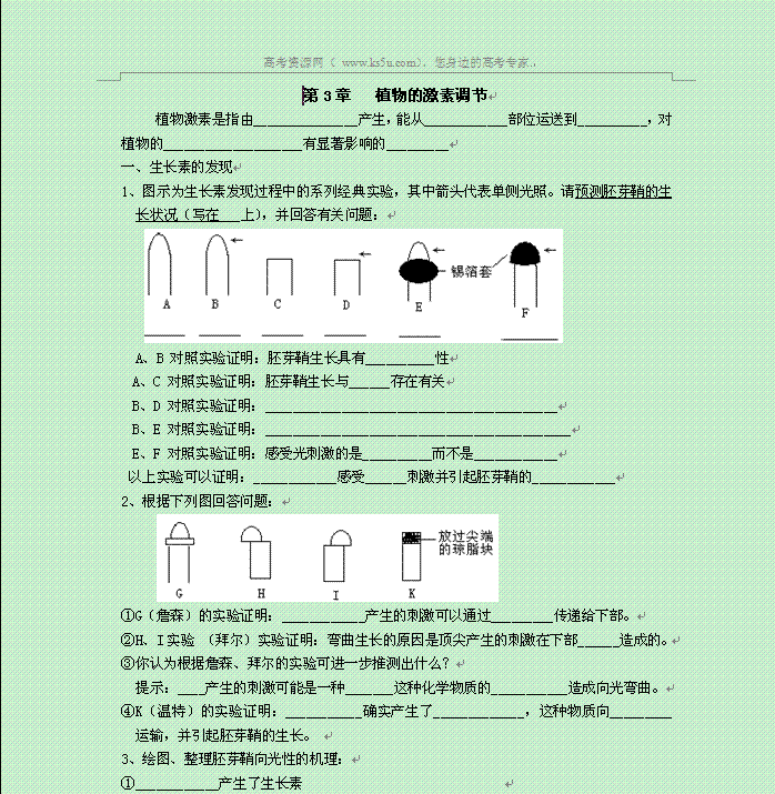 有道:2014年高中生物全册复习提纲素材:第3章 植物的激素调节 人教版必修3