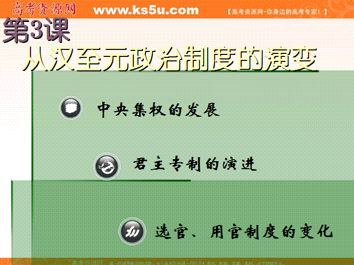 有道:山西省怀仁县巨子学校高一历史课件: 第3课《从汉至元政治制度的演变》(人教版必修1)