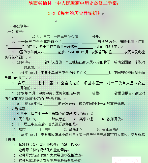 百度:陕西省榆林一中高中历史学案: 3-2《伟大的历史性转折》(人民版必修2)