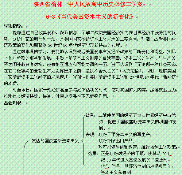 百度:陕西省榆林一中高中历史学案: 6-3《当代美国资本主义的新变化》(人民版必修2)