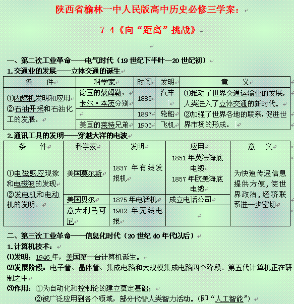 百度:陕西省榆林一中高中历史学案: 7-4《向“距离”挑战》(人民版必修3)