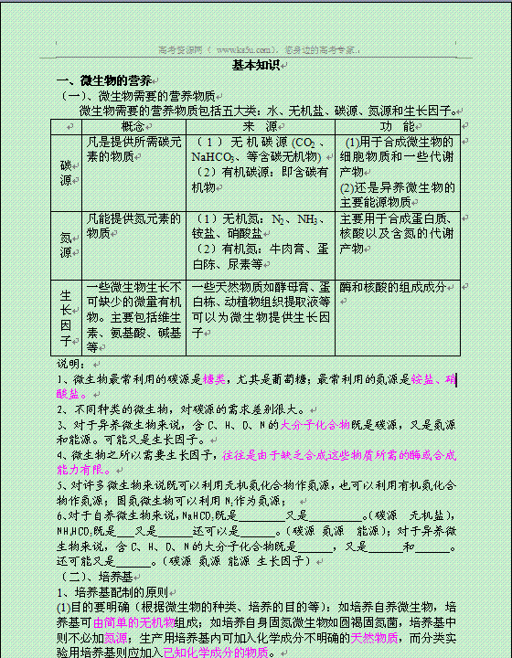 谷歌:2014年高三生物二轮复习学案:微生物的代谢 苏教版