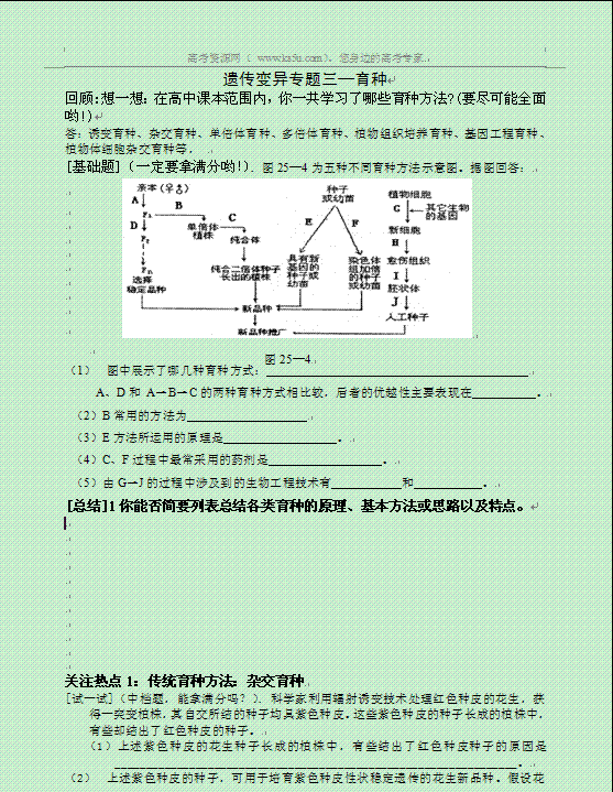 谷歌:2014年高三生物二轮复习学案:遗传与变异之育种 苏教版