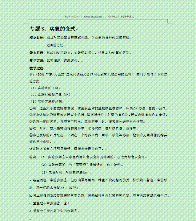 谷歌:福建省建瓯二中2014年高三生物教案:实验专题3《实验的变式》