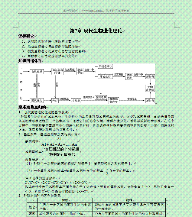 谷歌:2014年高三生物一轮复习学案: 现代生物进化理论