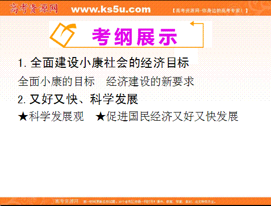 有道:山西大同一中2014届高三政治一轮复习课件:(经济生活)第四单元第十课《科学发展观小康社会的经济建设》(新人教版)