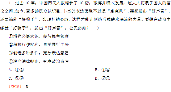 百度:《走向高考》2014高考政治二轮专题复习强化作业: 2-1公民与政府 新人教版必修2 Word版含答案