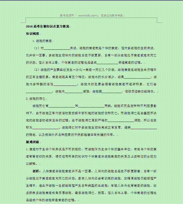 有道:2014年高考生物二轮复习教案:知识点17