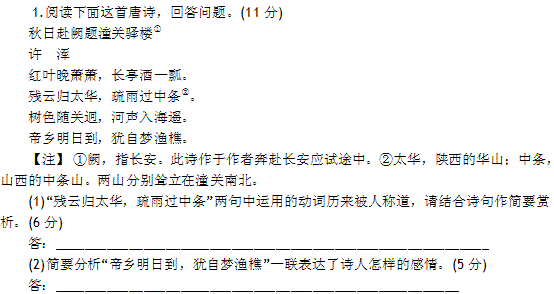谷歌:第12讲 古代诗歌鉴赏(测试) -2014年高考语文二轮复习精品资料(教师版) Word版含答案