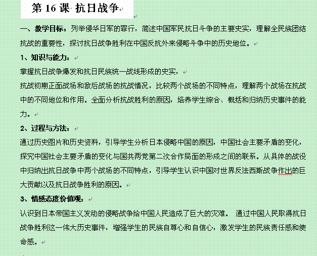 谷歌:山东省沂水一中高一历史教案: 抗日战争