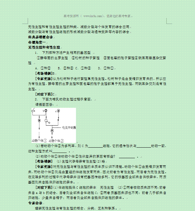 谷歌:2014年高考生物复习精准考点题型教案:生物的生殖