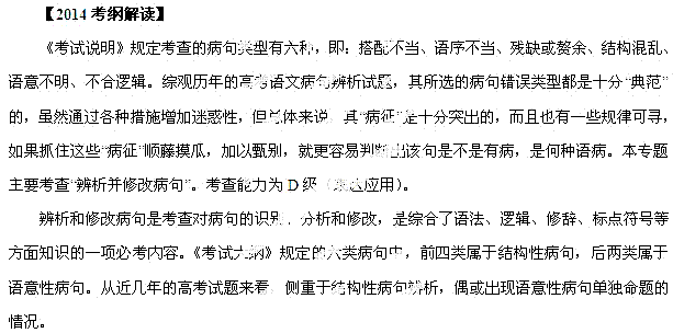 有道:第05讲 辨析并修改病句(教学案) -2014年高考语文二轮复习精品资料(学生版)