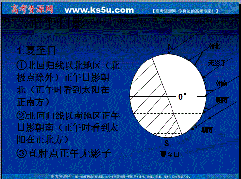 谷歌:四川省米易中学高三地理复习课件:日影的朝向变化