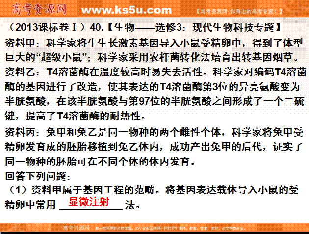 有道:2014高考生物题按专题分类汇编课件:选修三