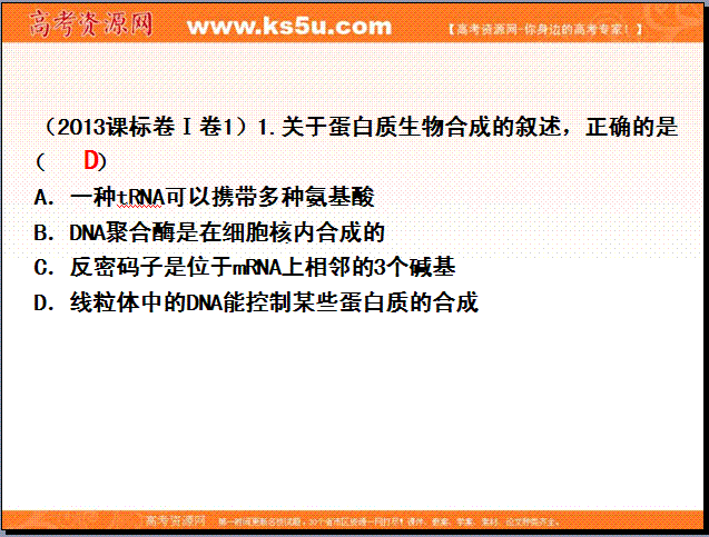 有道:2014高考生物题按专题分类汇编课件:组成细胞的分子
