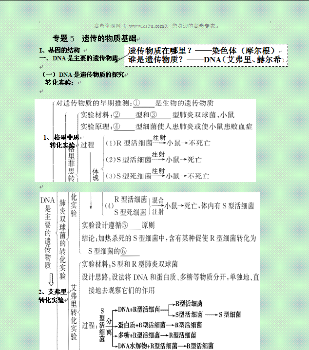 有道:广东省恩平一中2014届高三生物二轮复习教案:专题五 遗传的物质基础