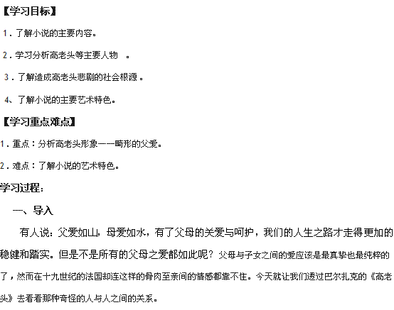 谷歌:2013-2014学年高二语文导学案:《高老头》(一)(新人教版必修3)