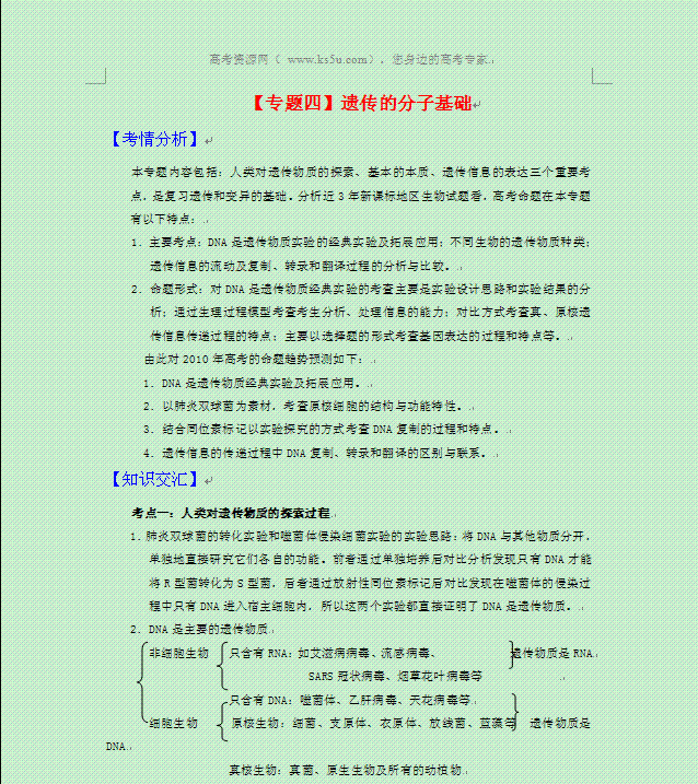 有道:2014届高三生物二轮复习素材:专题4《遗传的分子基础》新人教版
