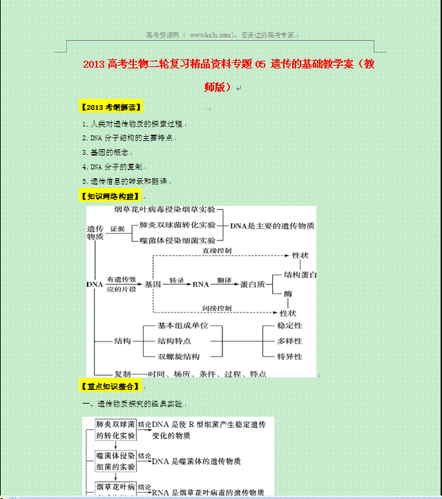 谷歌:2013高考生物二轮复习精品资料专题05 遗传的基础学案 人教版