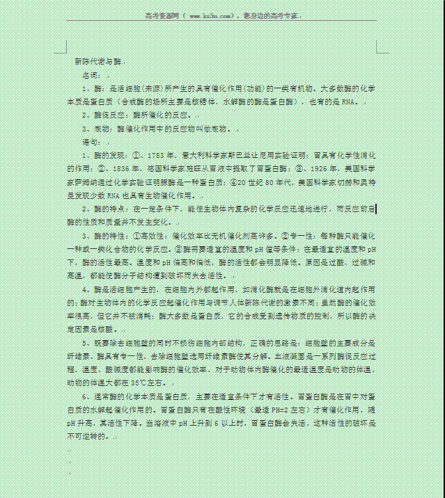 谷歌:2014年高三生物复习素材:重点知识点《新陈代谢与酶》