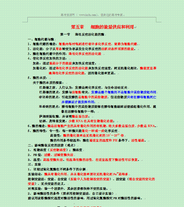 有道:2014年高一生物复习教案:第五章知识点总结 必修一 人教版