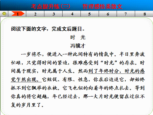 有道:《北京一轮复习汇总》2014届高三语文一轮复习课件:散文 考点提升练(三)